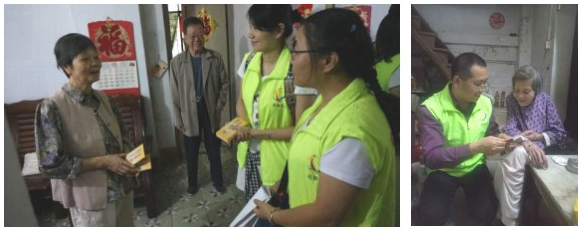 ▲每个月的入户探访及派发猪肉券