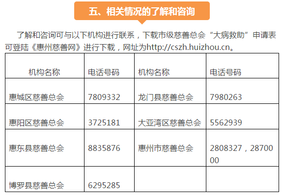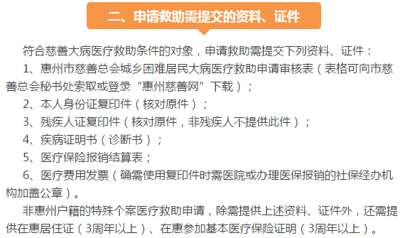 《惠州市慈善总会城乡困难居民大病医疗救助办法》申请相关事宜如下: