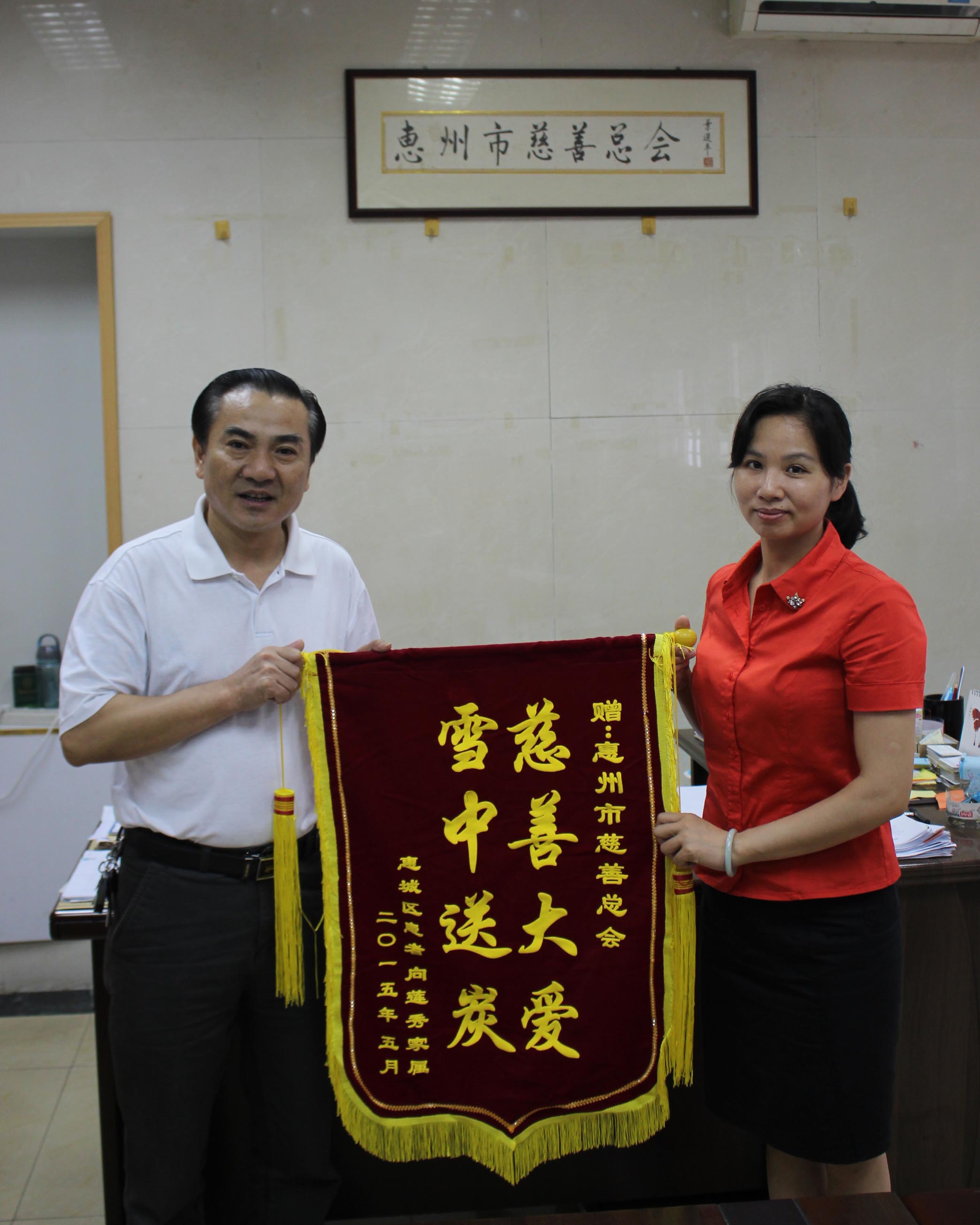 老张怀着感恩的心,来到惠州市慈善总会送上了感谢锦旗,并说道:“正是有了这笔救助金,有了惠州市慈善总会的关心,他们才度过了人生最艰难的时期,目前经过不断的治疗,向莲秀的病情开始有了好转,迎来了人生的希望,感谢有这么好的慈善医疗救助办法,感谢惠州市慈善总会。”