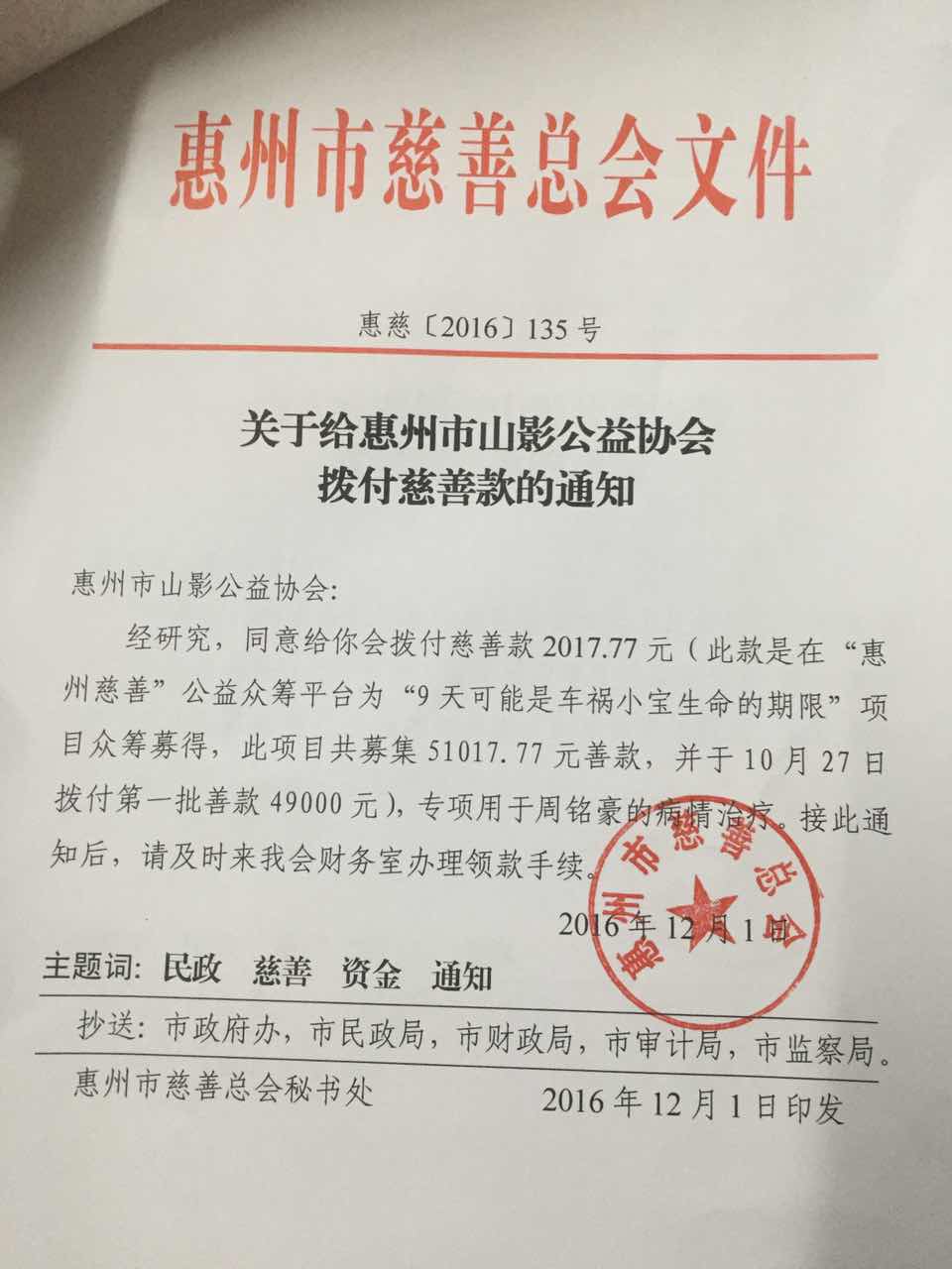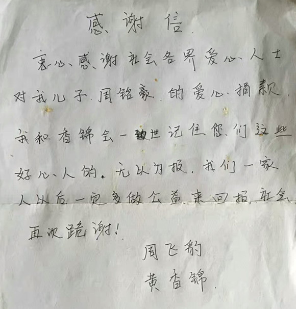 小宝爸爸妈妈感激涕零,在第一时间通过“惠州慈善”公益众筹平台向各地市民手书,表达最衷心的感谢!目前小宝情况渐趋好转,但脾脏肺脏等器官由于创伤严重,痊愈治疗还待较长时日。